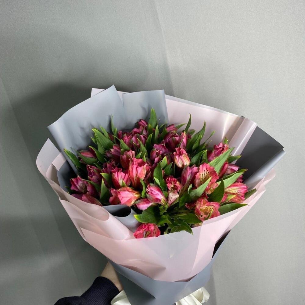 Альстромерия – 17 шт.Пленка матовая – 1 шт.Лента атласная – 1 шт.