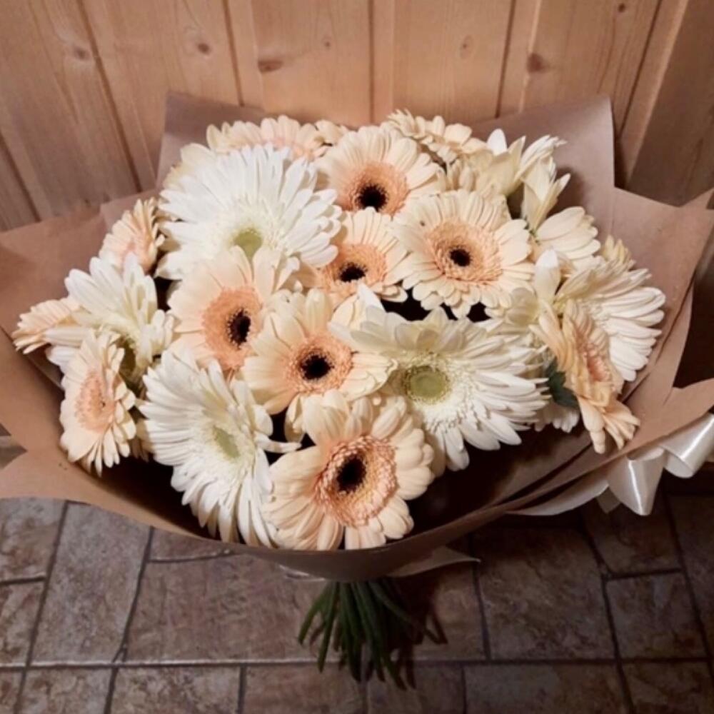 Гербера мини – 20 шт.Крафт упаковка – 1 шт.гербера крупная – 9 шт.