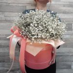 “Сиреневый туман” – композиция из гипсофилы в шляпной коробке