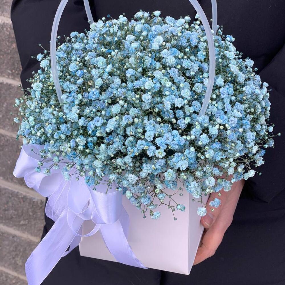 Стильная сумочка с воздушной гипсофилой станет идеальным подарком для самых любимых и близких! Памятка для букета:1. Чистая вода раз в сутки.2. Стебли подрезаем на 0,5см при каждой смене воды.3. Ставим в прохладное место, но не у окна.4. Чтобы вода оставалась свежей, не допускайте попадания листьев и лепестков в воду.5. Если это композиция в оазисе, то так же необходим ежедневный полив.