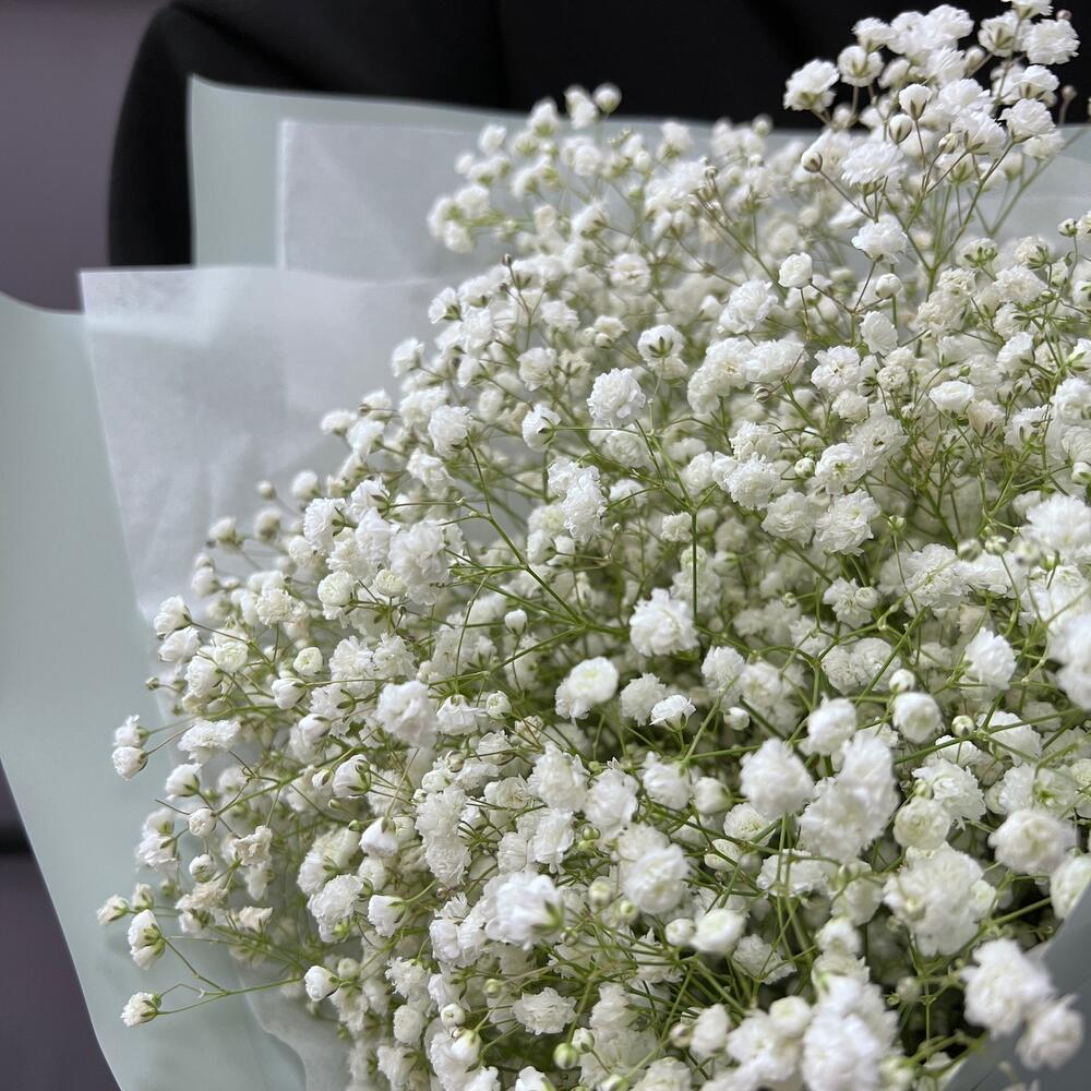 Гипсофила – 5 шт.Лента атласная – 2 шт.Пленка матовая – 5 шт.Тишью – 1 шт.