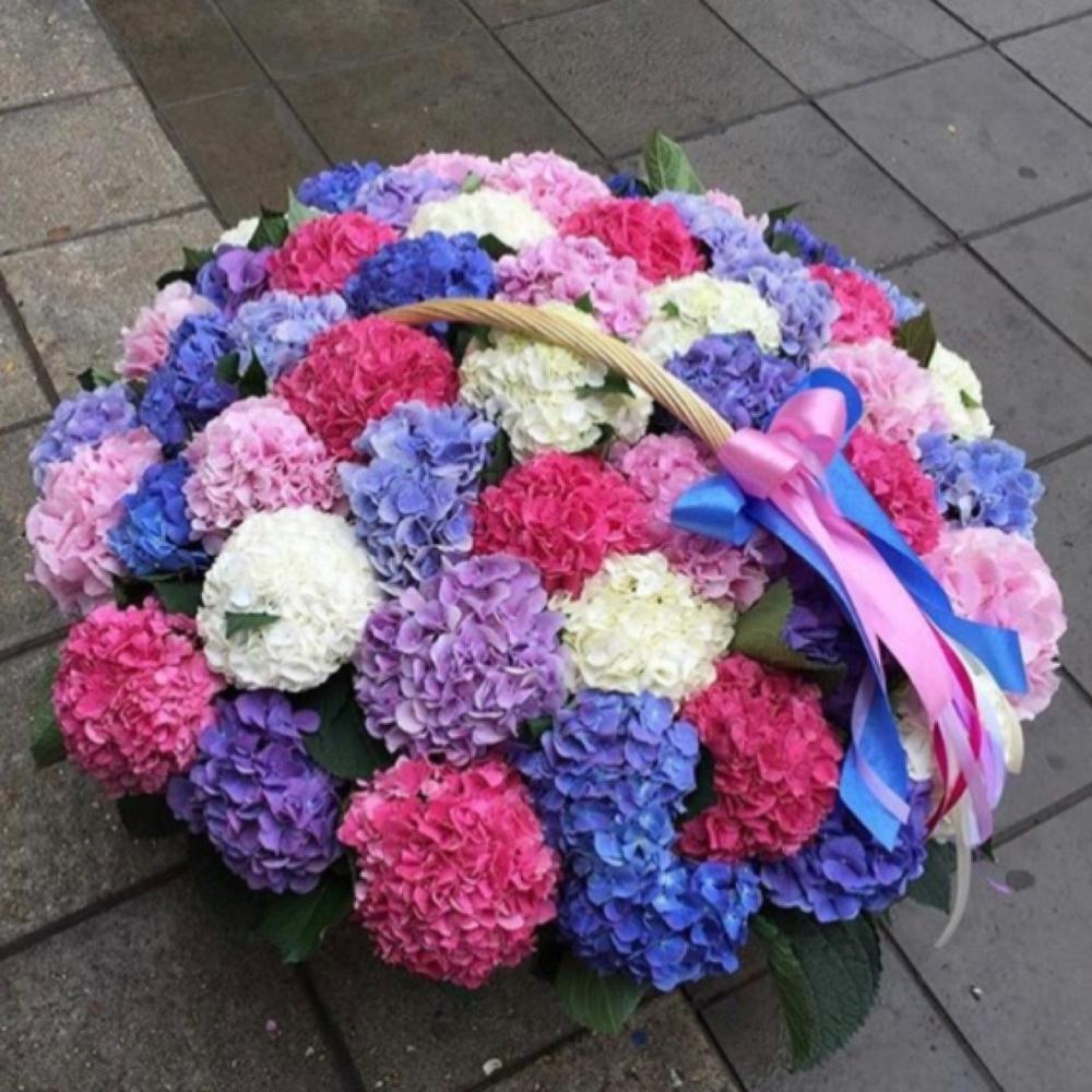 Корзина с 29 яркими гортензиями