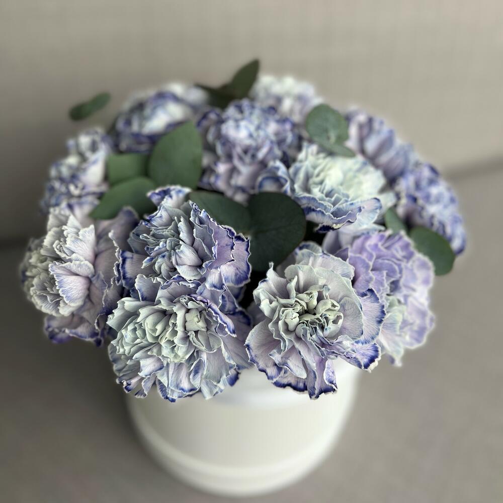 Шляпная коробка лавандовых гвоздик (N 125)