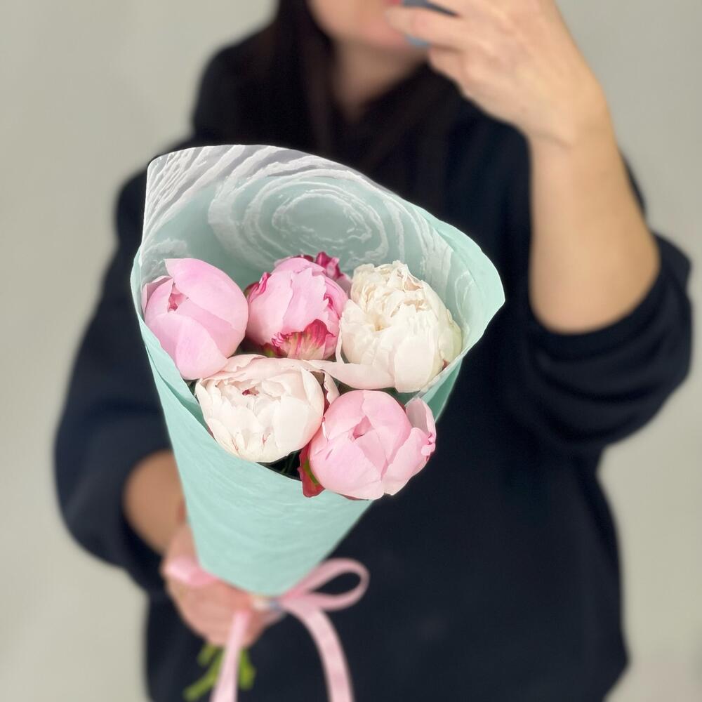 5 пионов в мятной упаковке