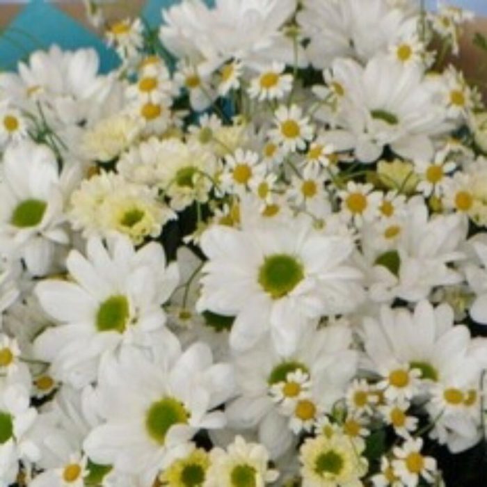 Хризантема кустовая – 5 шт.Танацетум – 5 шт.Сантини – 5 шт.Упаковка дизайнерская – 3 шт.