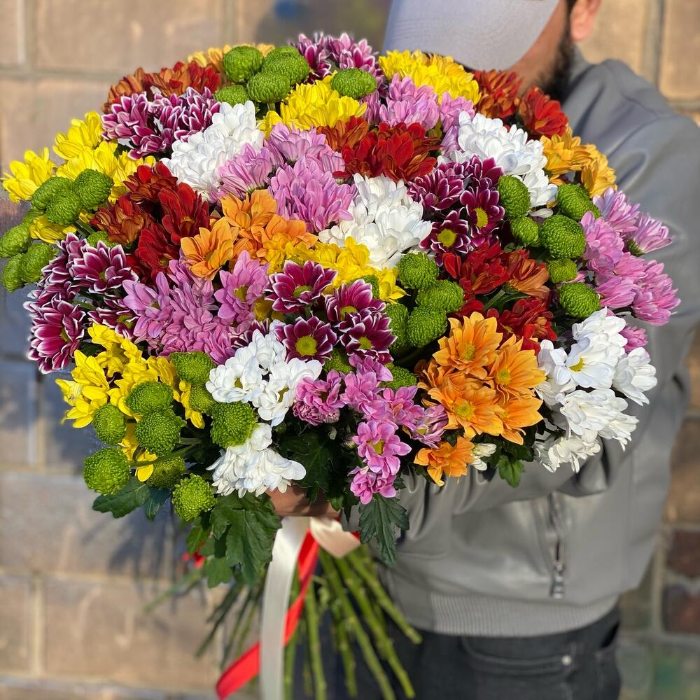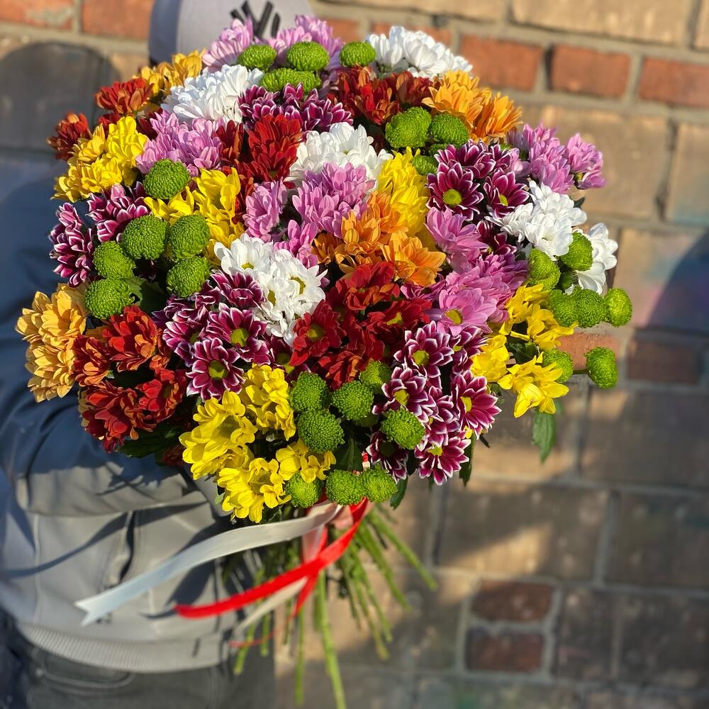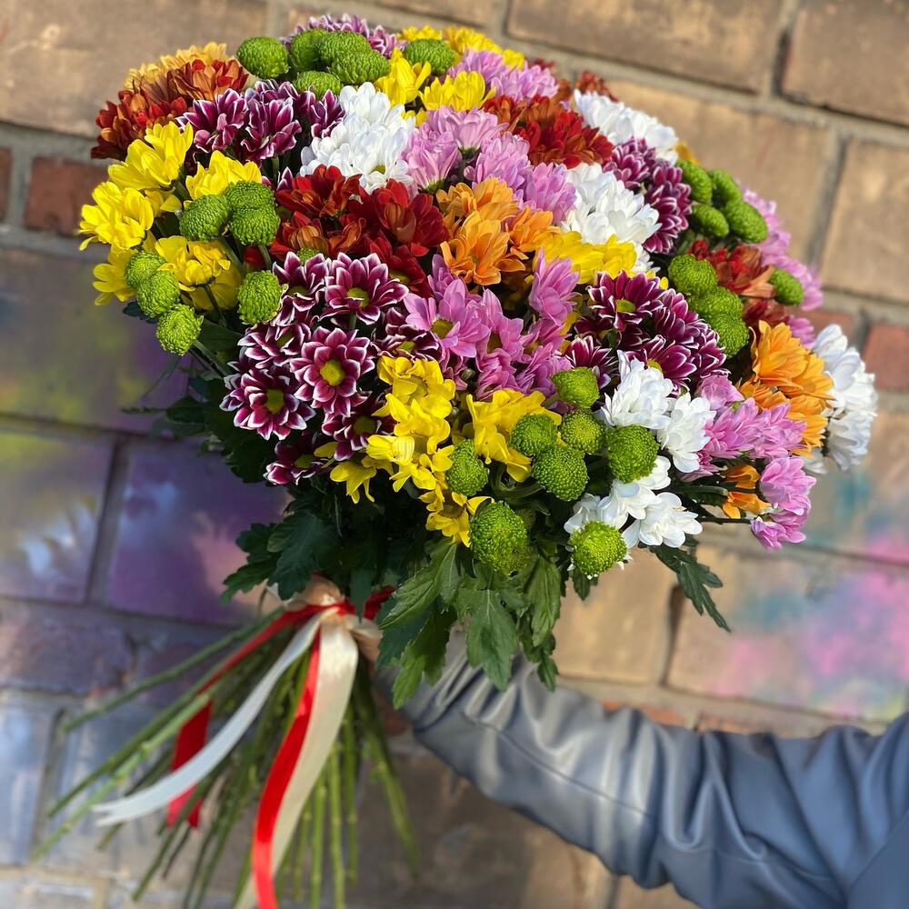 Хризантема кустовая – 35 шт.Лента атласная – 1 шт.