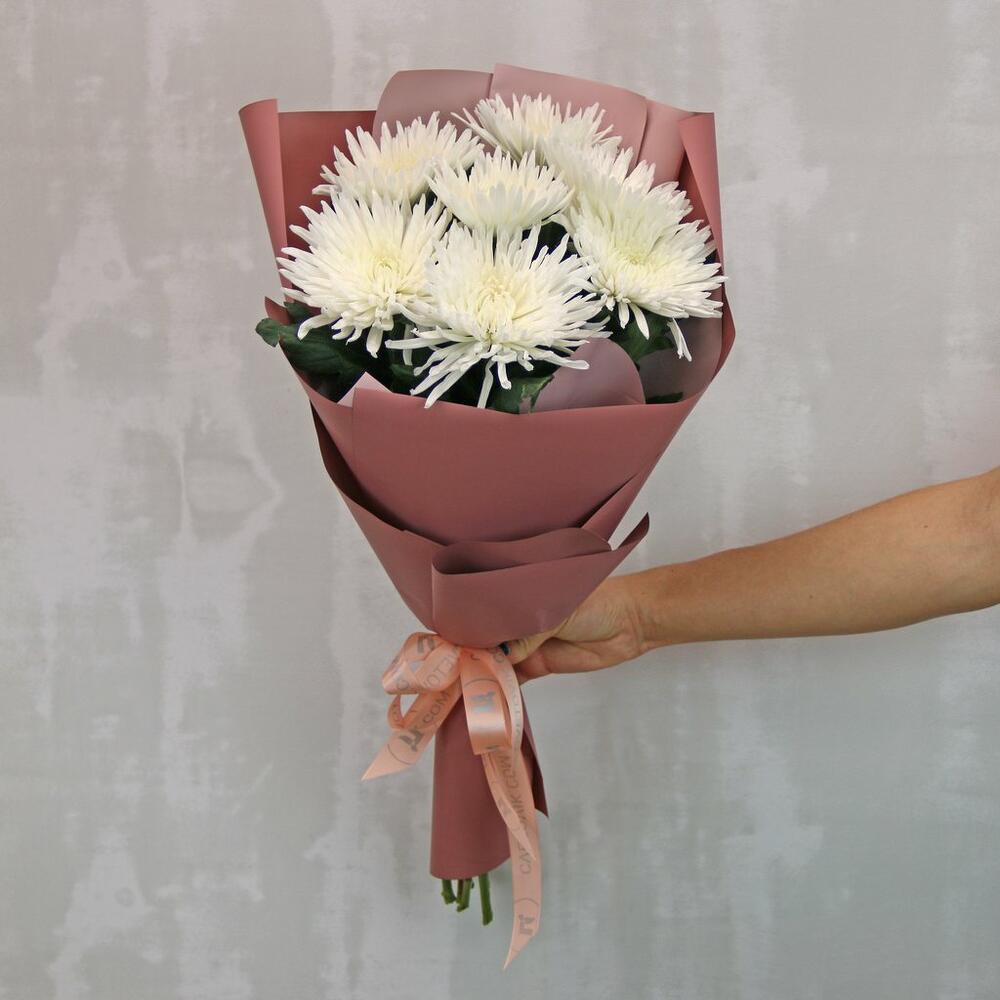 Букет из 7 белых хризантем Анастасия в стильной упаковке