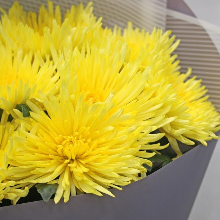 Букет из 9 желтых хризантем Анастасия в стильной упаковке