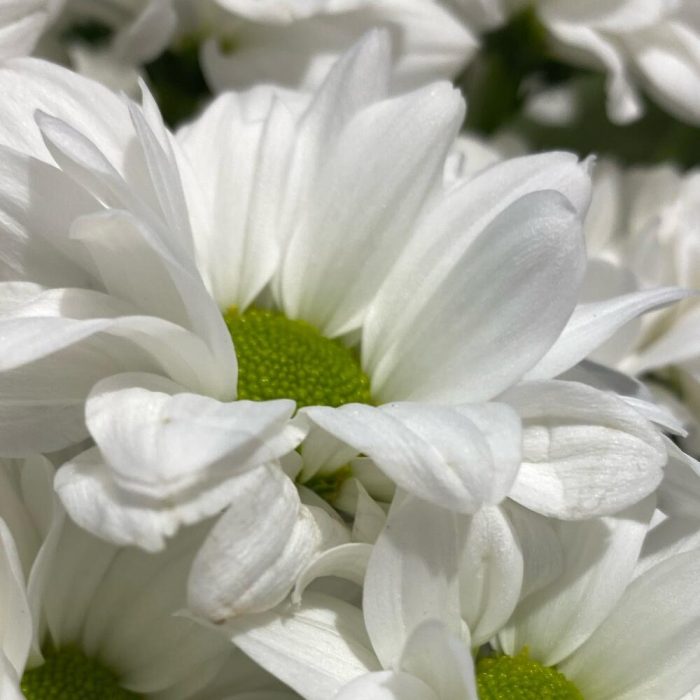 Хризантема кустовая – 7 шт. Лента атласная – 2 шт. Тишью – 2 шт. Салфетки – 4 шт. Слюда упаковка – 2 шт.