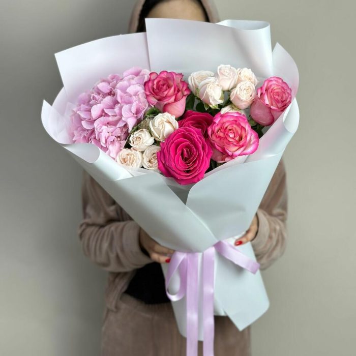 Гвоздики, Кустовые розы, Лизиантусы, Пионовидные розы, Розы