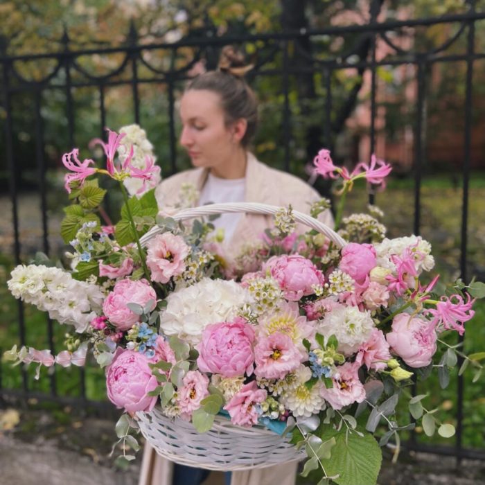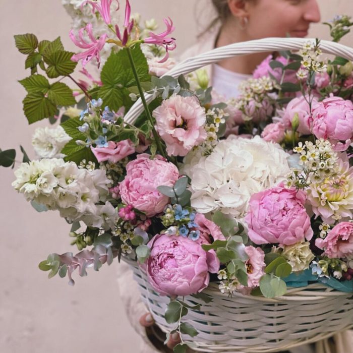 Большая корзина с пионами “WILD FLOWER”