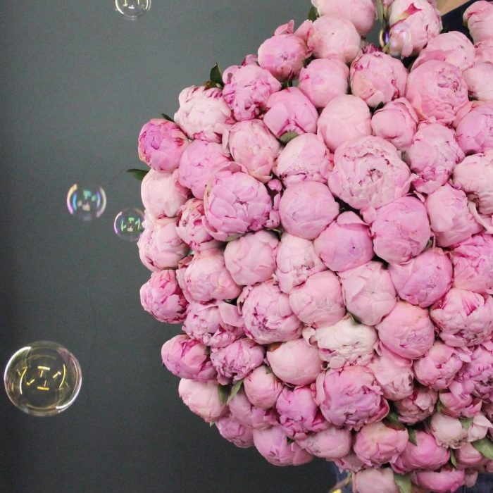 51 Пионовидных кустовых роз в дизайнерской упаковке