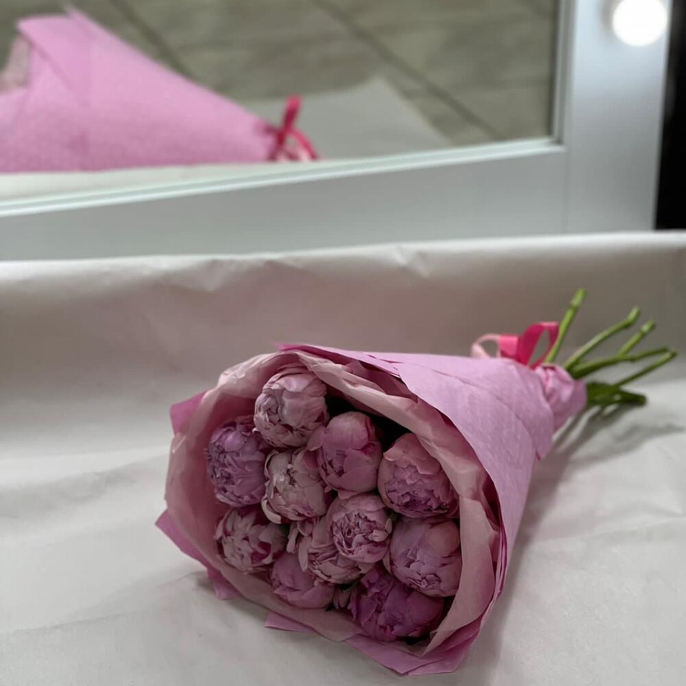 Лента атласная – 1 шт.пион розовый премиум – 11 шт.упакрвк – 2 шт.