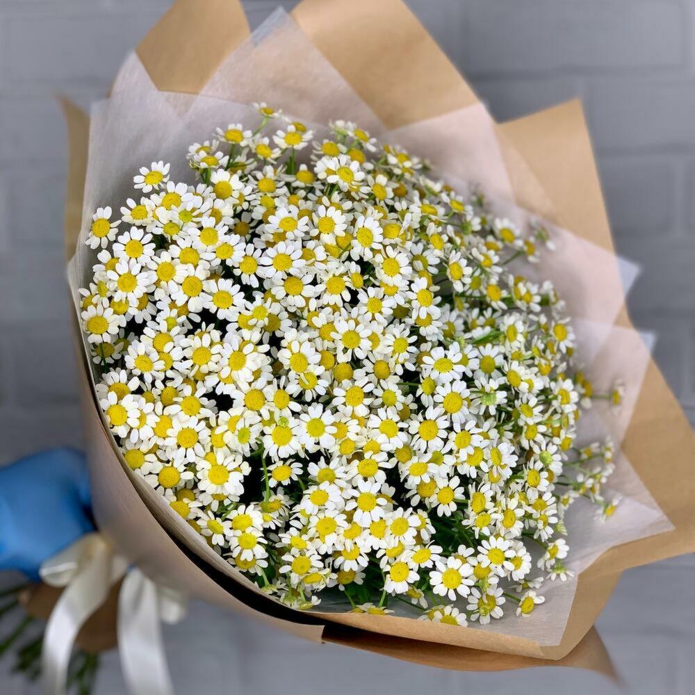 Букет 22: кустовые ромашки в жатом крафте