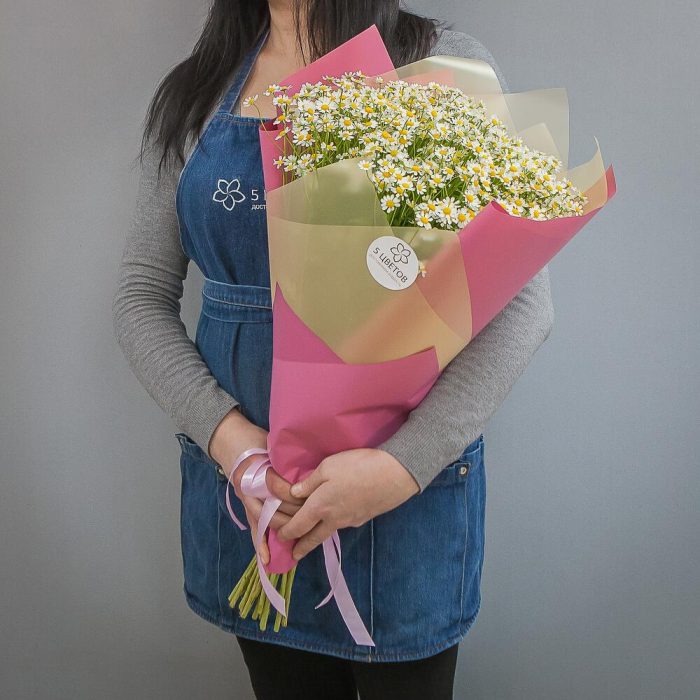 Ромашка матрикария – 51 шт.Атласная лента – 1 шт.