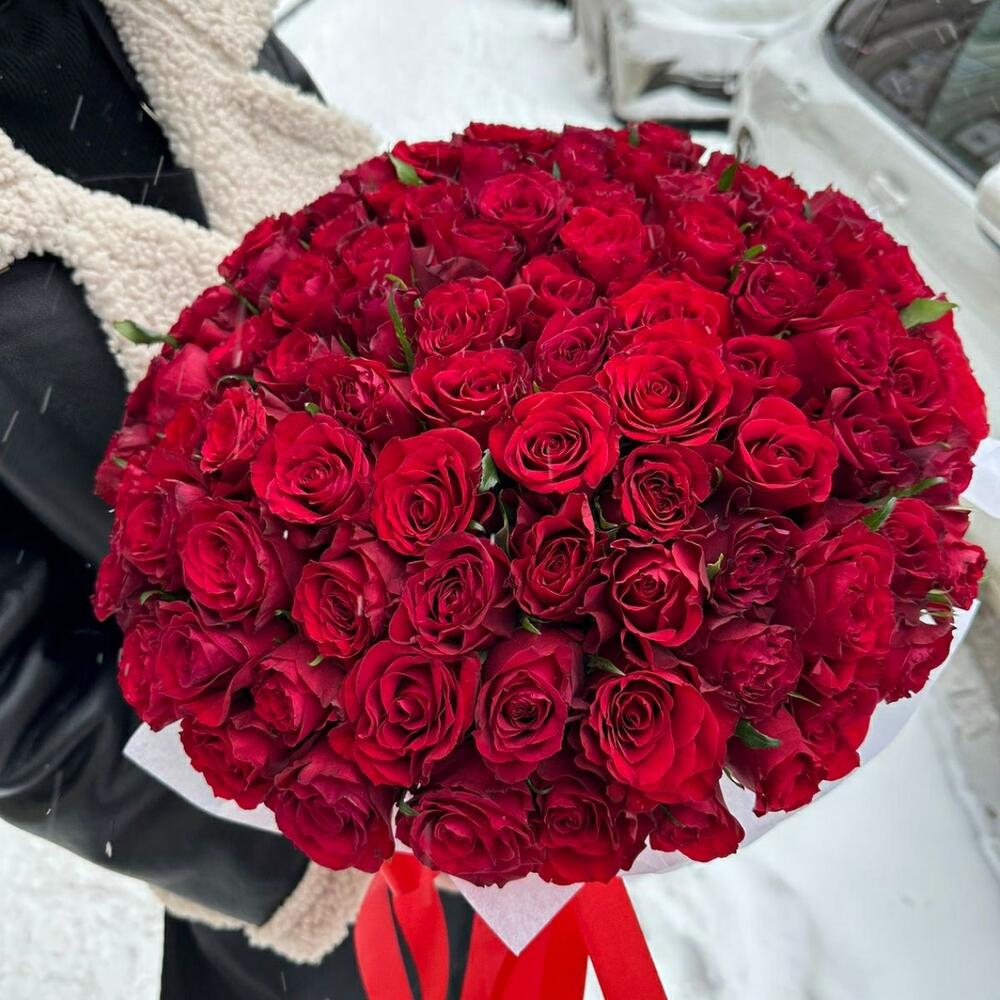 Метки: 101 роза, от 5000 руб, цветы в коробке