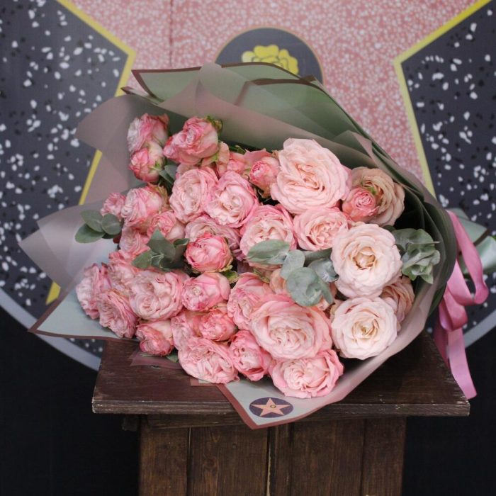 11 кустовых пионовидных роз + эвкалипт