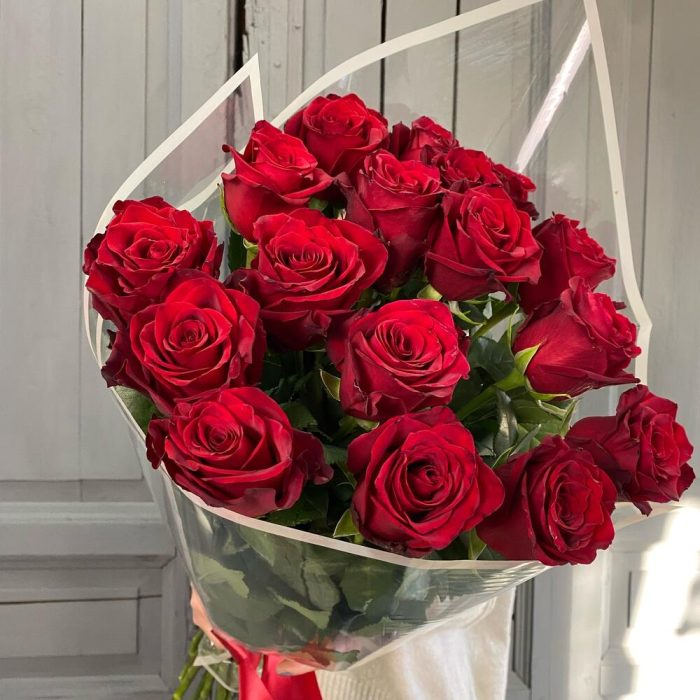 Роза Эквадор – 17 шт.Лента атласная – 1 шт.Упаковка дизайнерская – 2 шт.