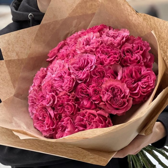Лента атласная – 1 шт.Упаковка крафт – 3 шт.роза кантри блю – 25 шт.