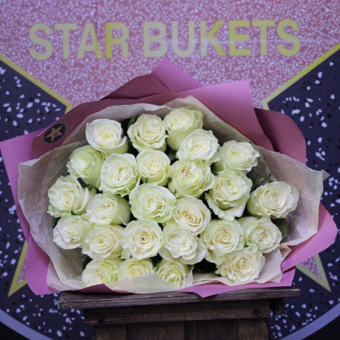 Роза Эквадор Мондиаль – 25 шт.Тишью – 2 шт.Пленка дизайнерская – 2 шт.Лента атласная – 1 шт.