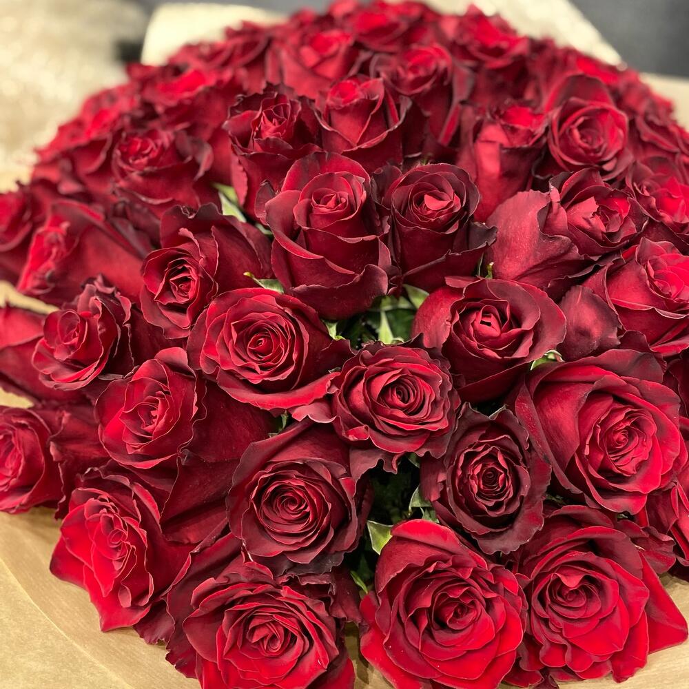 Лента атласная – 2 шт.Крафт упаковка – 2 шт.Роза 60 см – 51 шт.