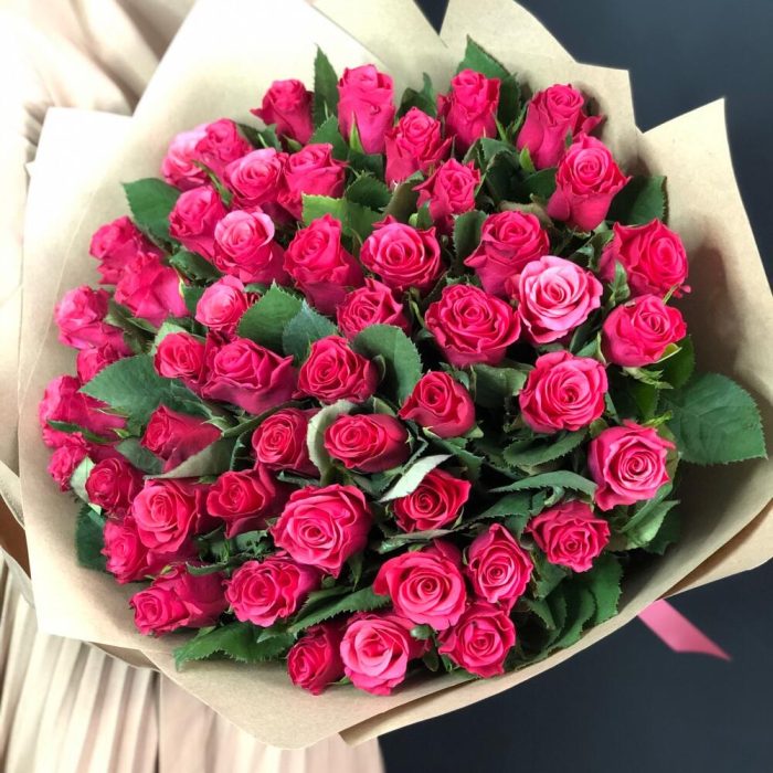 Роза – 51 шт.Крафт упаковка – 3 шт.