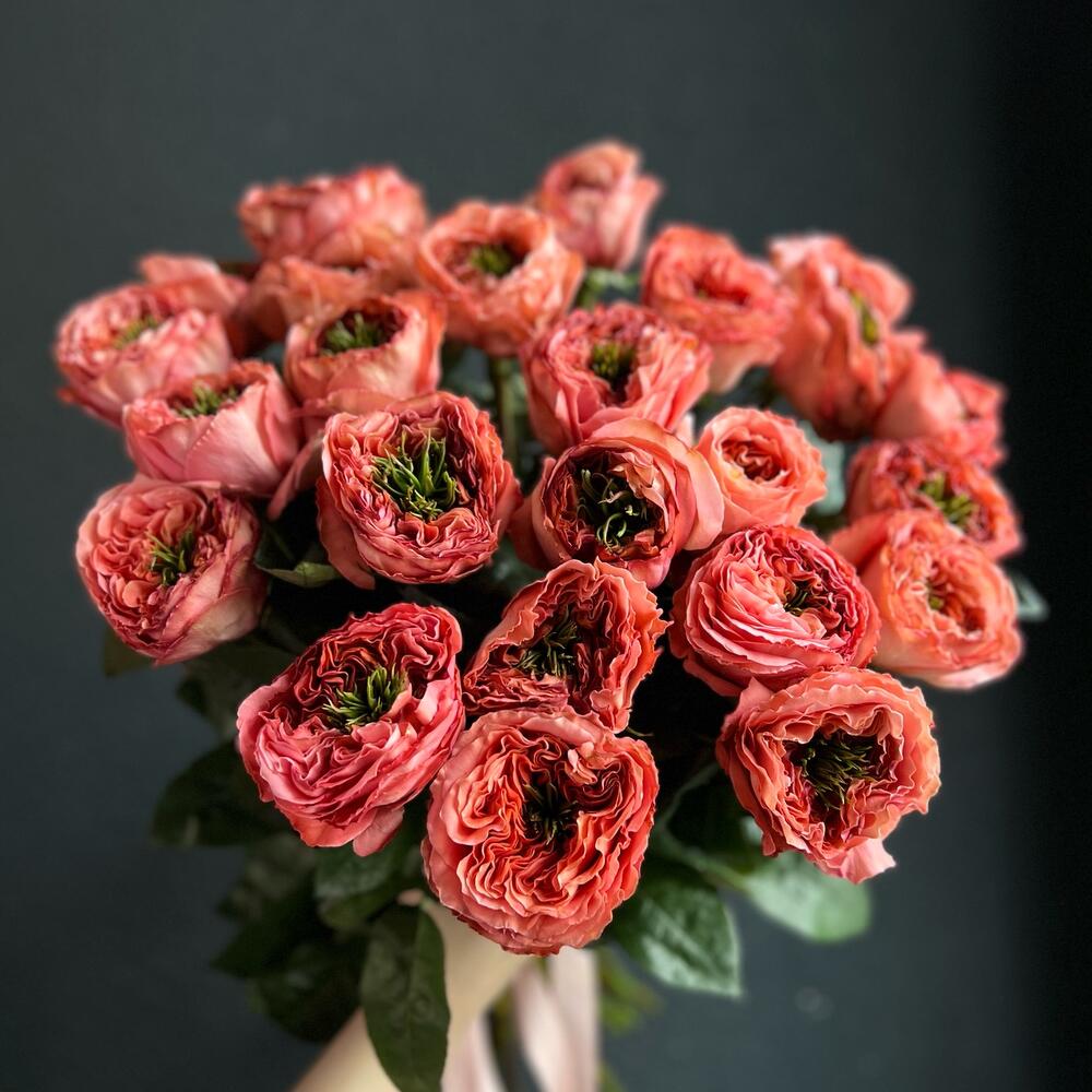 Букет Эксклюзивных пионовидных 25 роз «Мандарин»