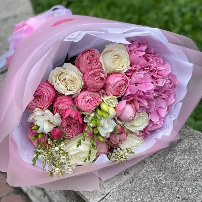 Гортензии, Кустовые розы, Лизиантусы, Пионовидные розы, Розы