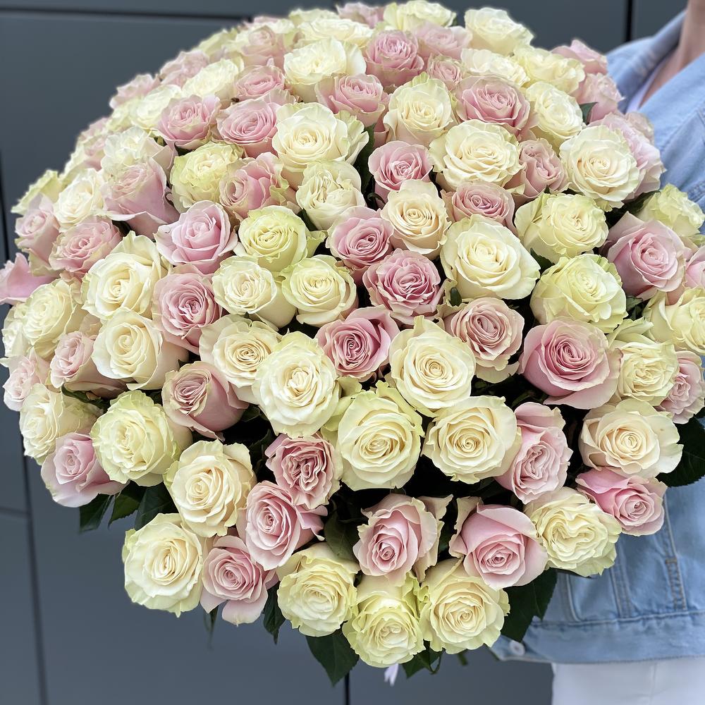 Букет из 101 белой и розовой розы