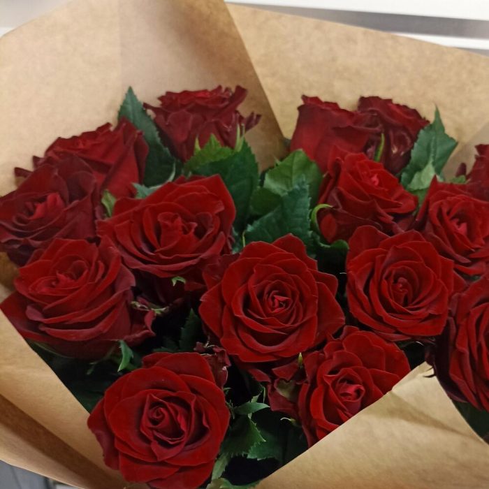 Букет из 15 красных роз Ред Наоми длиной 60 см в упаковке крафт