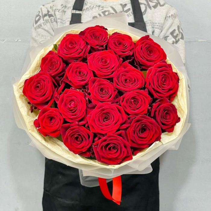 Лента атласная – 1 шт.Роза 70 см – 19 шт.Упаковка дизайнерская – 4 шт.