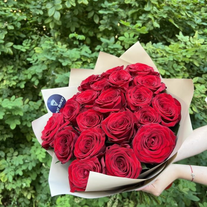 Букет из 21 красной розы 50см
