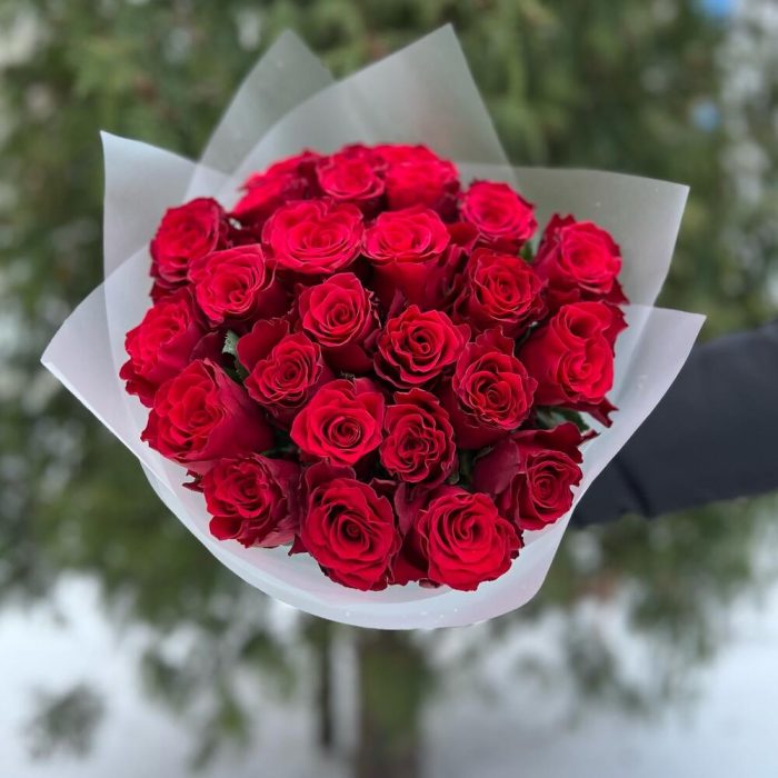 Роза красная 40 см – 25 шт.Пленка матовая – 2 шт.