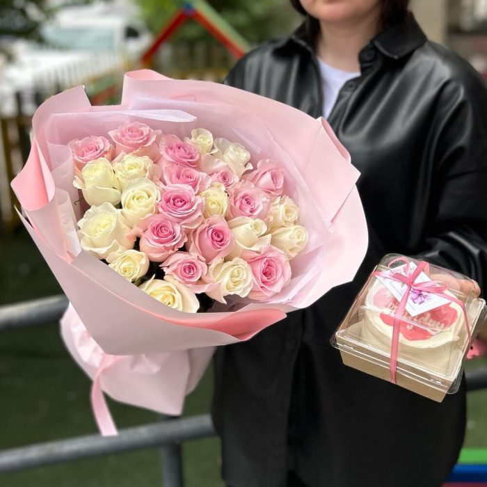 Роза Эквадор – 25 шт. бенто торт – 1 шт.