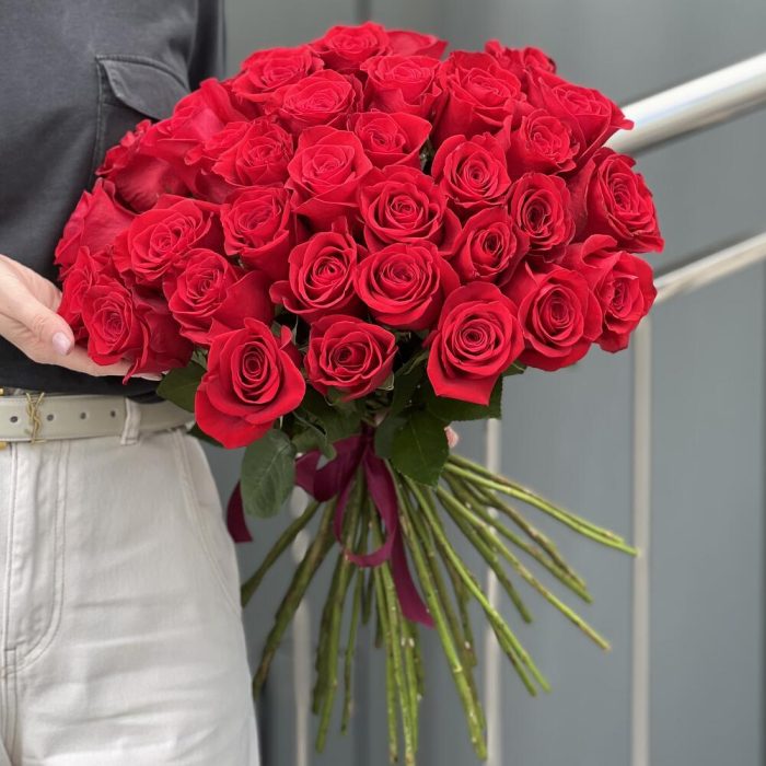 Красная роза – 35 шт. оформление – лента – 1 шт.