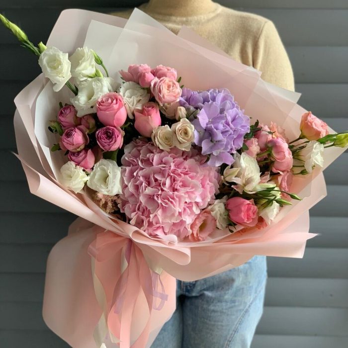 Гвоздики, Кустовые розы, Лизиантусы, Пионовидные розы, Розы