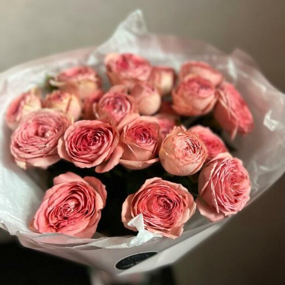 Кустовая пионовидная роза – 5 шт.декоративная укпаковка – 1 шт.Атласная лента – 1 шт.
