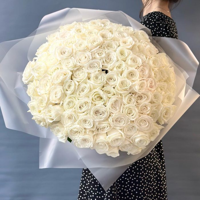 роза пионовидная плая бланка – 99 шт.матовая прозрачная корейская пленка – 4 шт.Лента атласная – 2 шт.