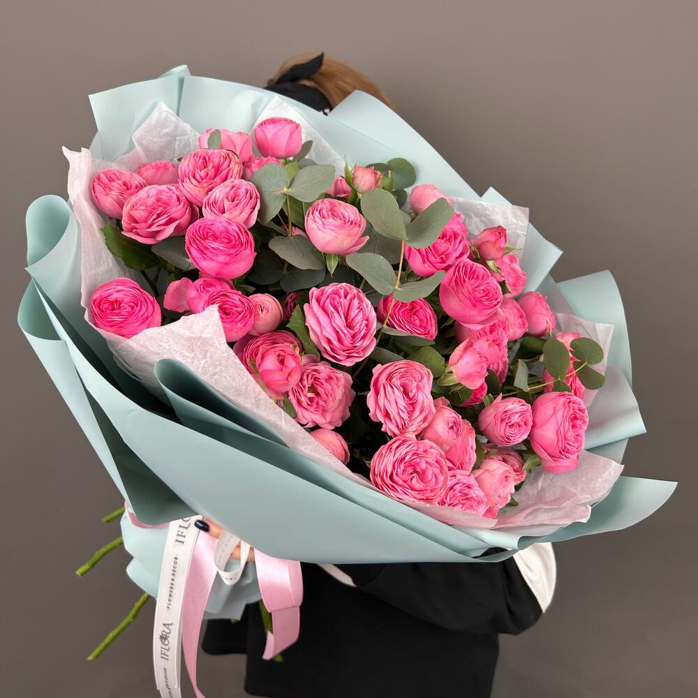 Букет из пионовидной розы и эвкалипт