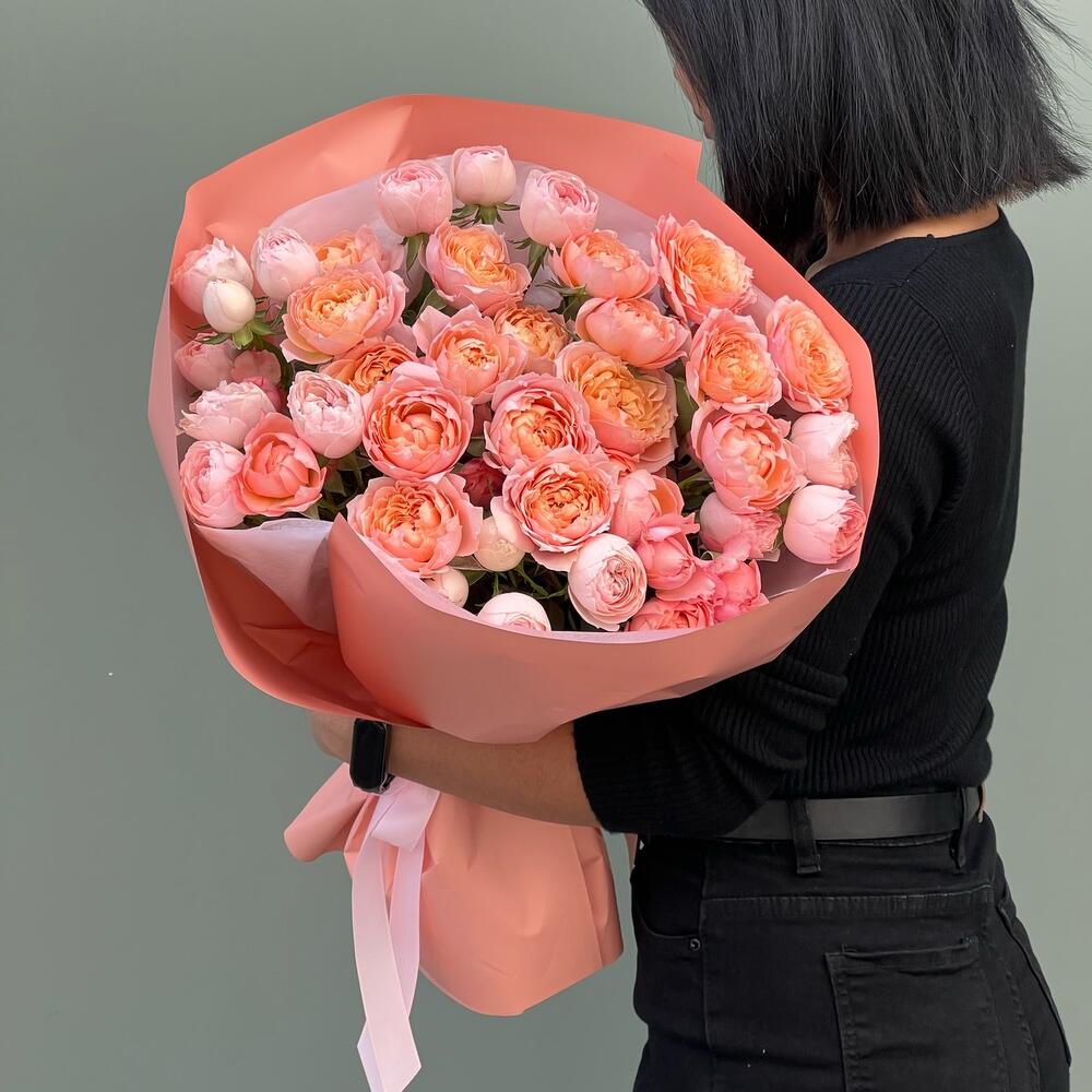 Кустовые розы, Пионовидные розы, Розы, Сухоцвет, Тюльпаны