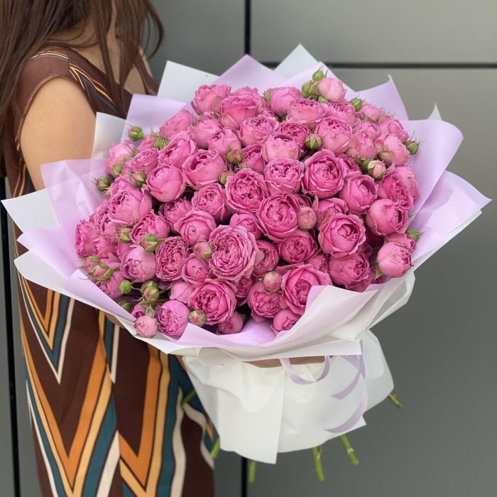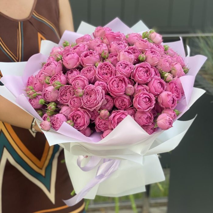 Писташ – 7 шт. Оформление – 1 шт. кустовая пионовидная роза misty bubbles – 25 шт.