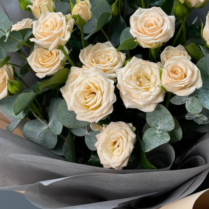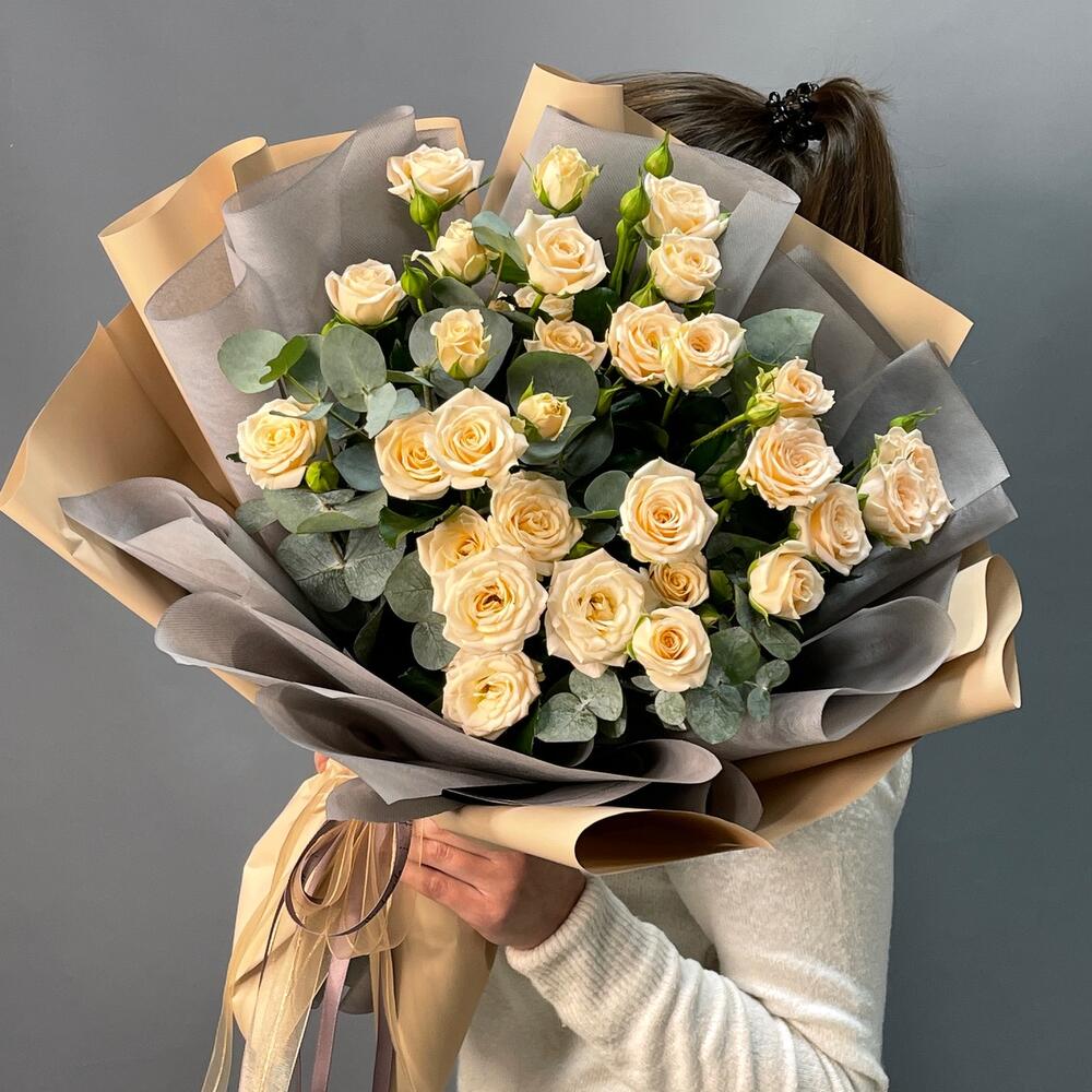 Букет с кустовой розой «Кофейный Маршмэллоу»