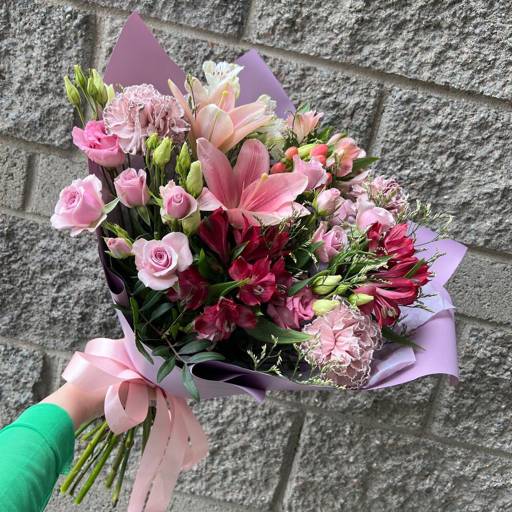 Категорий: Альстромерии, Гвоздики, Кустовые розы, Лизиантусы, Лилии, Розы