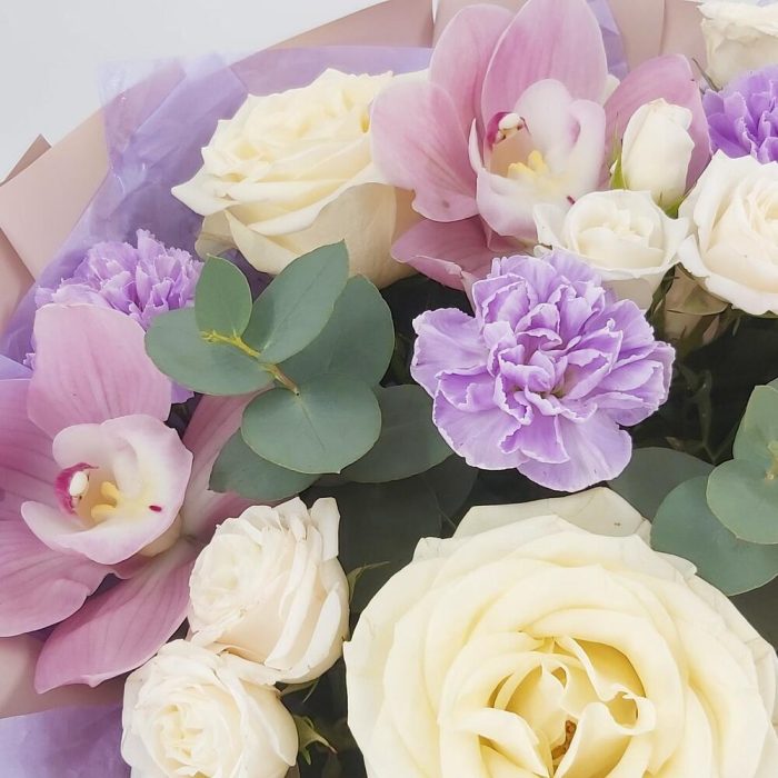 Букет с орхидеями, розами и лунными гвоздиками Марсель