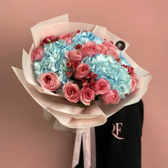 “Эвкалиптическая роскошь” гортензия и пионовидная кустовая роза