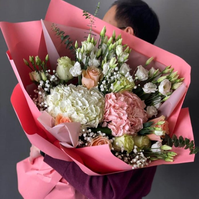 Гвоздики, Кустовые розы, Лизиантусы, Пионовидные розы, Розы