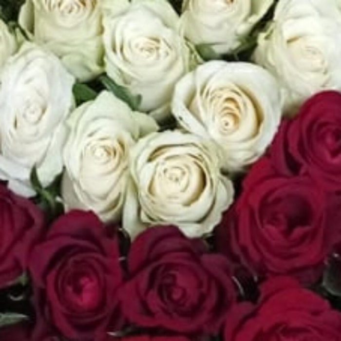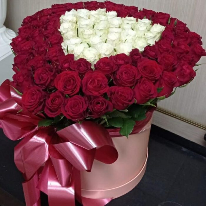 Метки: 101 роза, Белые розы, Красные розы, от 5000 руб, Роза 30 см, Розы в коробке