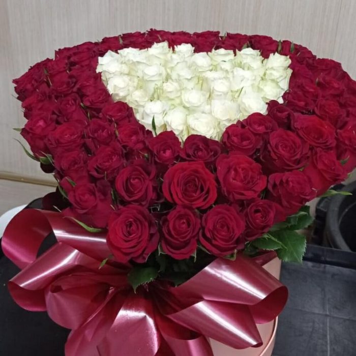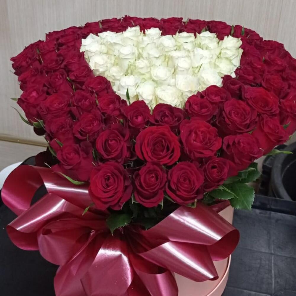 Роза красная – 71 шт. Роза белая – 30 шт. "сердечко для любимой " – 101 шт.