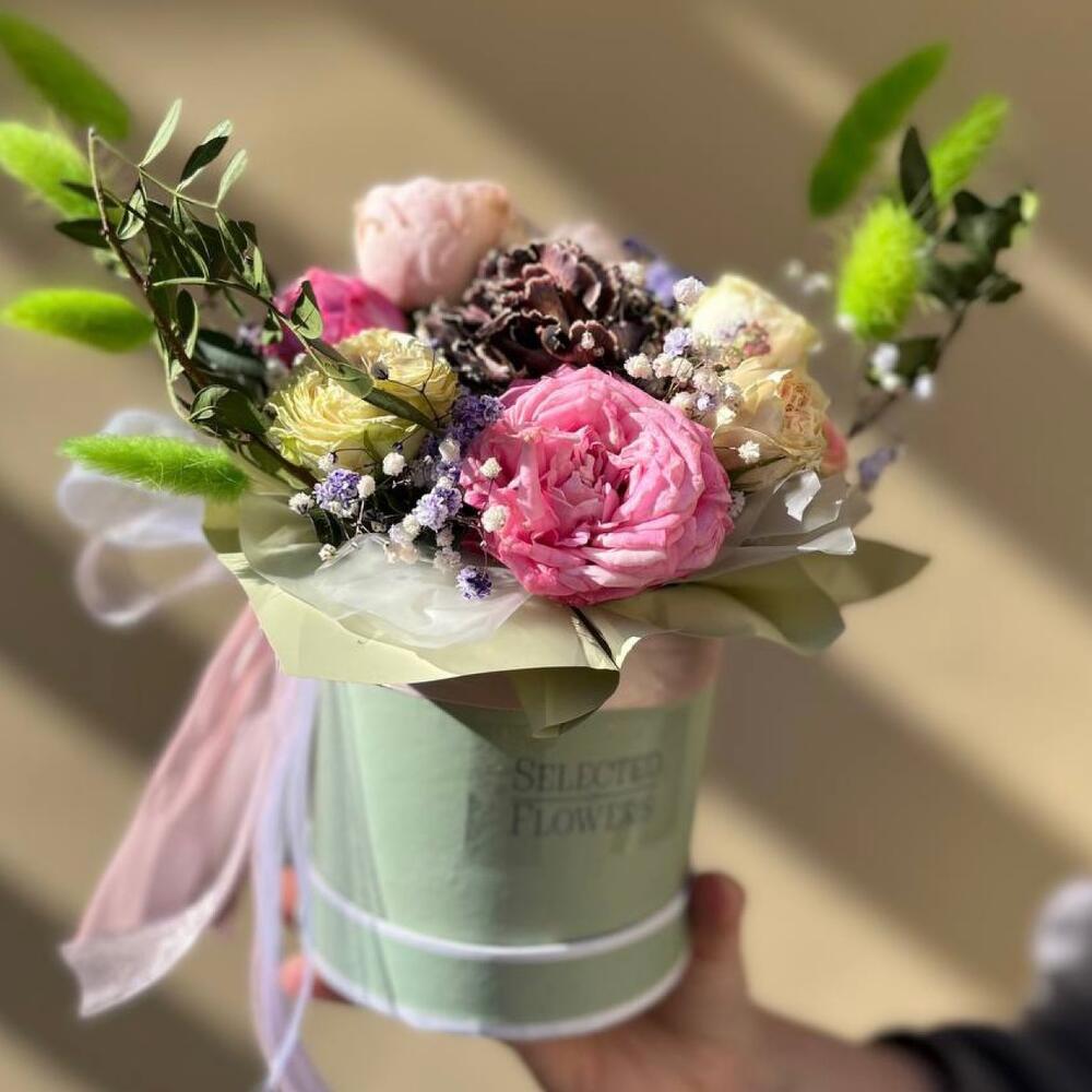 “Эвкалиптическая роскошь” гортензия и пионовидная кустовая роза