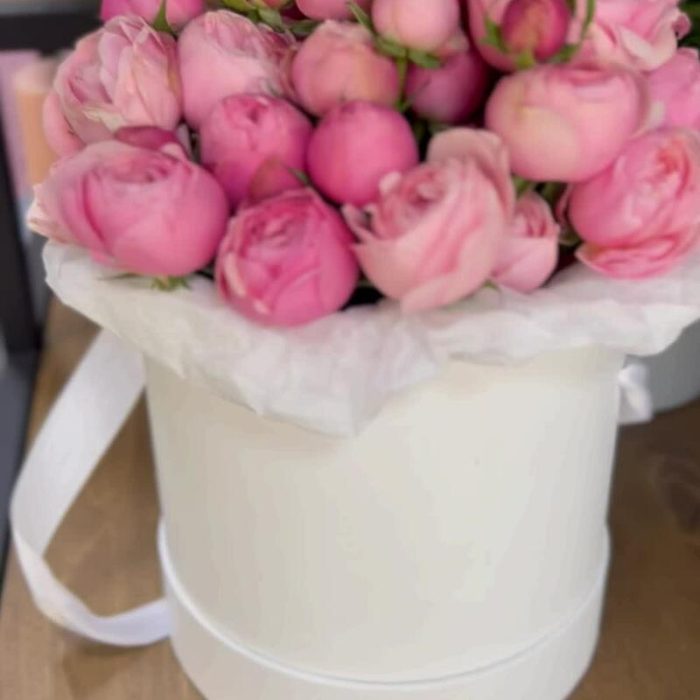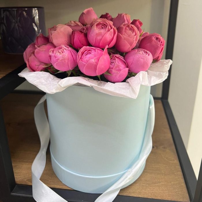 Пионовидная роза кустовая в шляпной коробке ( шляпная коробка может отличаться по цвету – белая, розовая, голубая, сиреневая).Необычные и такие завораживающие пионовидные розы в шляпной коробке! Такая композиция не только очаровательный подарок, который останется в сердце у каждой обладательнице, но и удобный ведь его можно сразу же куда-нибудь поставить.Silvia pink – шикарная кустовая пионовидная роза, по приятной и вкусной цене – нет аналогов этому предложению и не будет. И нет аналогов этому сорту. Эксклюзивная Роза премиум класса.Кустовая пионовидная Роза , сорт Silvia Pink, цвет : розовый.Высота : 40-50 см, лёгкий аромат.Кол-во цветков на стебле: 3-5 шт.Устойчивость к жаре : низкаяВесь цветок свежий, проходит контроль качества.